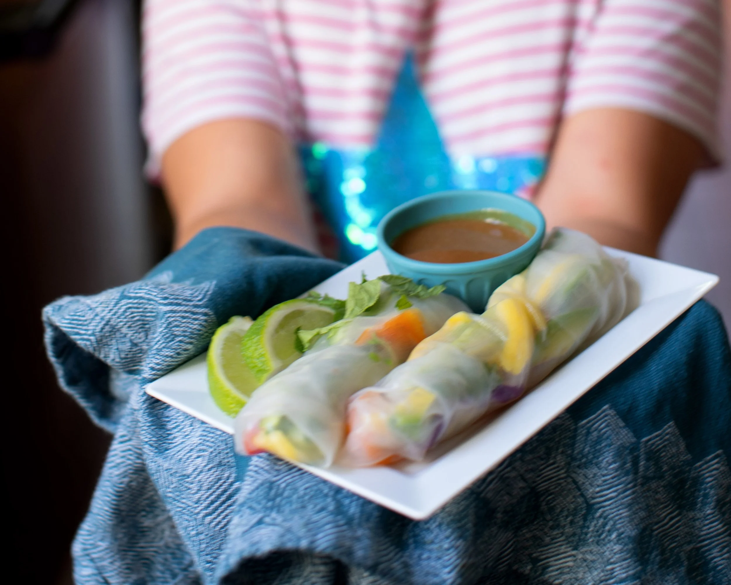 This signature recipe allows us to teach the technique of julienne slicing, chiffonade, flavor mixing, stacking, rolling and is a great reminder to Eat The Rainbow!