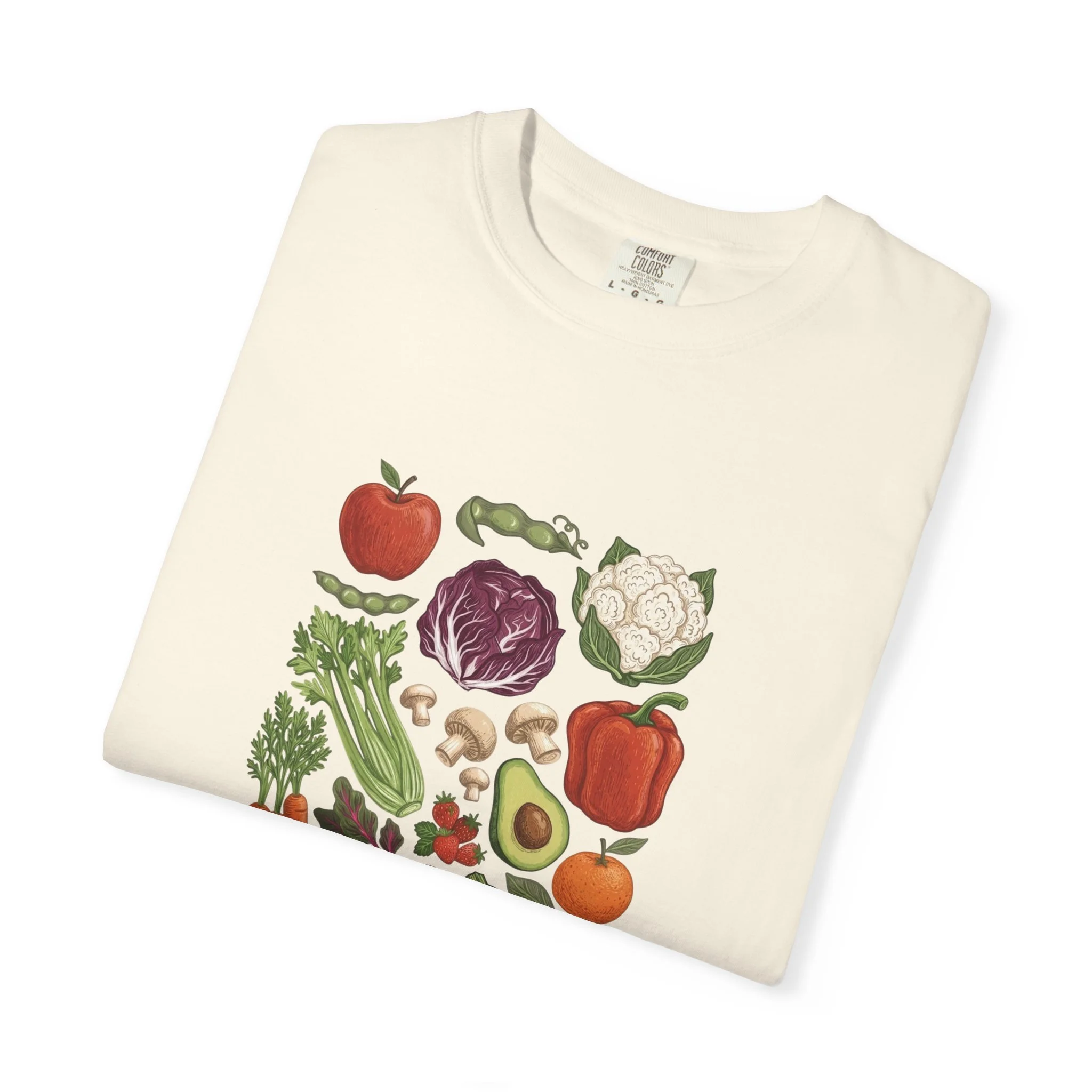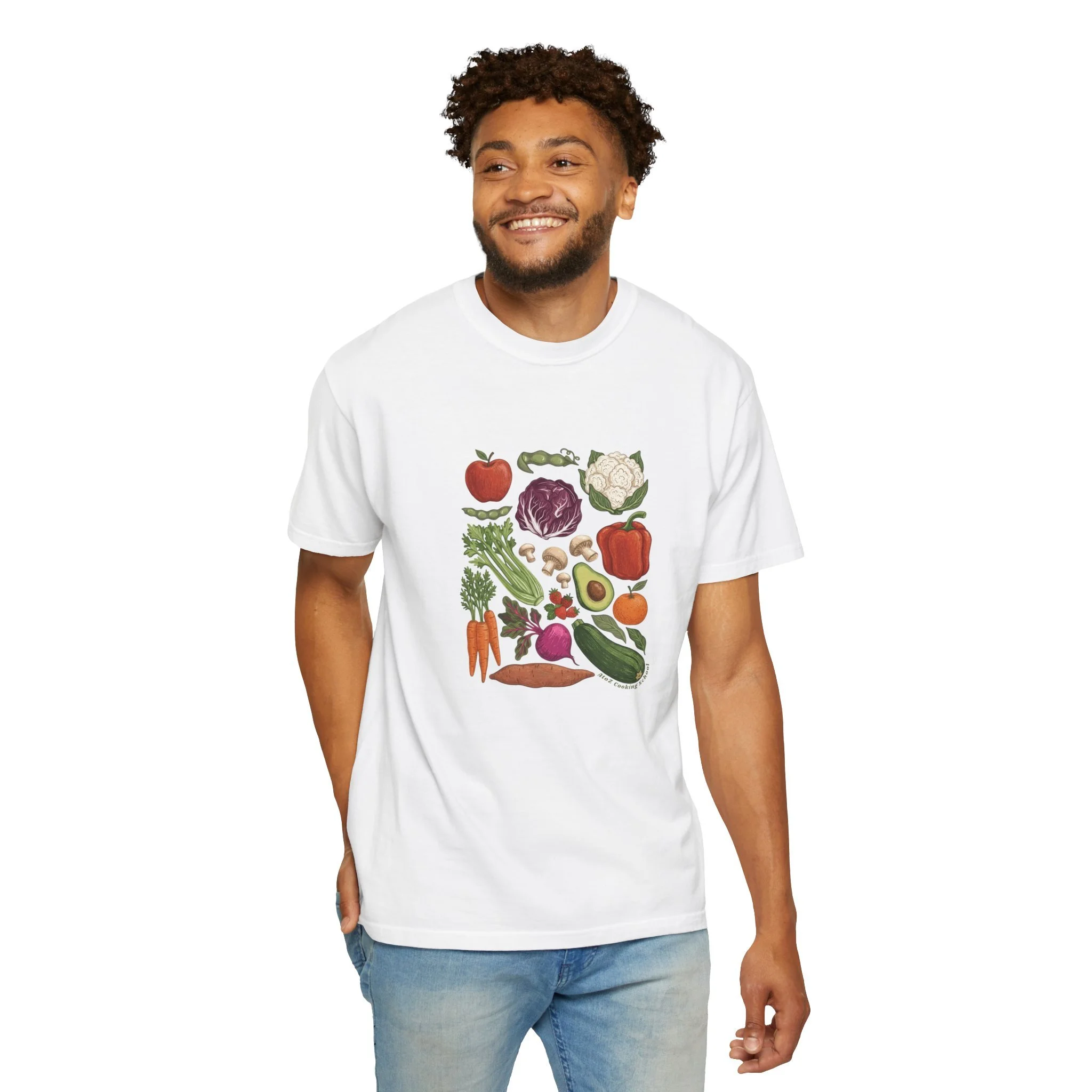 From apples to zucchini and all the produce in between—wear the AtoZ rainbow! Our Veggie Medley shirt is perfect for flaunting your love of produce, and AtoZ.